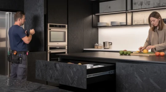 L’OSB noir révolutionne l’univers de l’aménagement culinaire en apportant une esthétique industrielle raffinée aux espaces de vie contemporains. Ce matériau composite, traditionnellement cantonné aux chantiers de construction, s’impose désormais comme un choix de design audacieux pour les cuisines modernes. Sa…