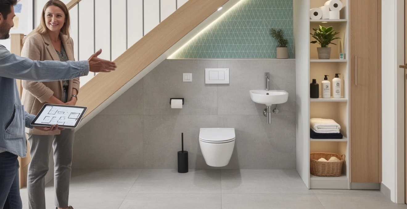 Optimisation de l’espace restreint sous escalier pour aménagement sanitaire
