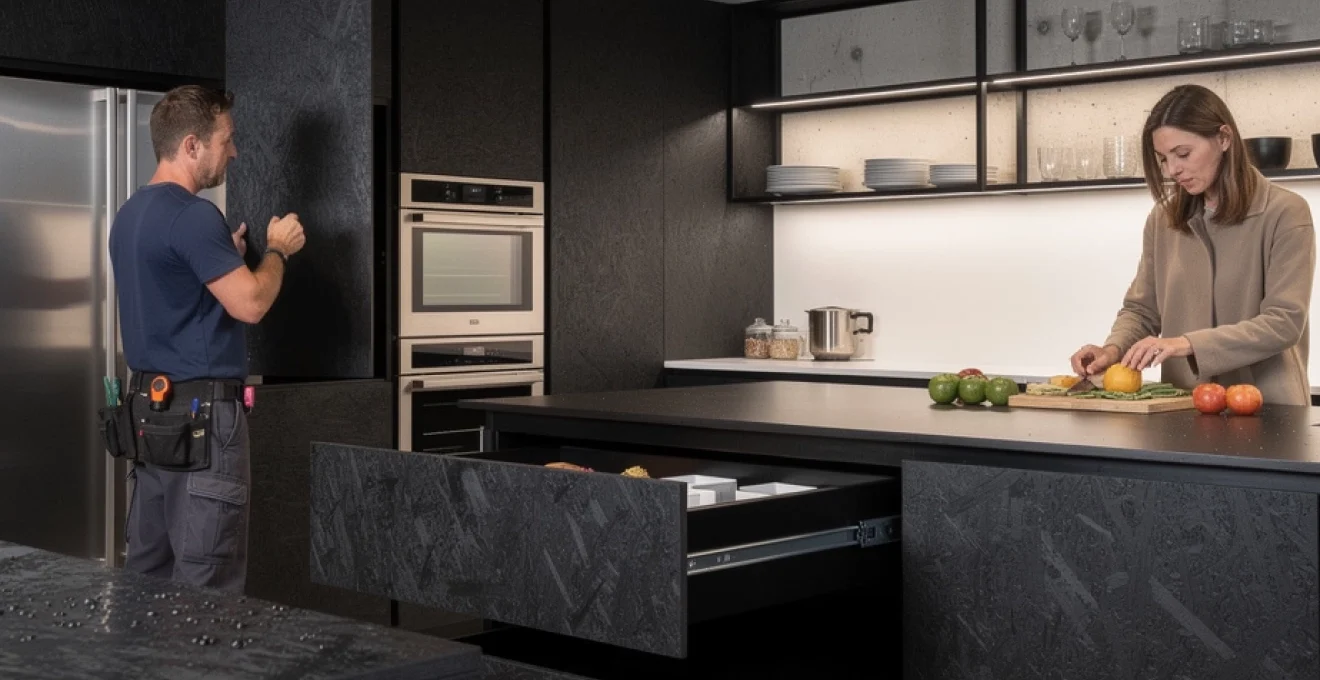 Intégration architecturale de l’OSB noir dans les cuisines contemporaines